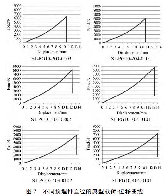 典型載荷位移曲線如圖2所示,拉脫破壞載荷及破壞形式如表3所示。
